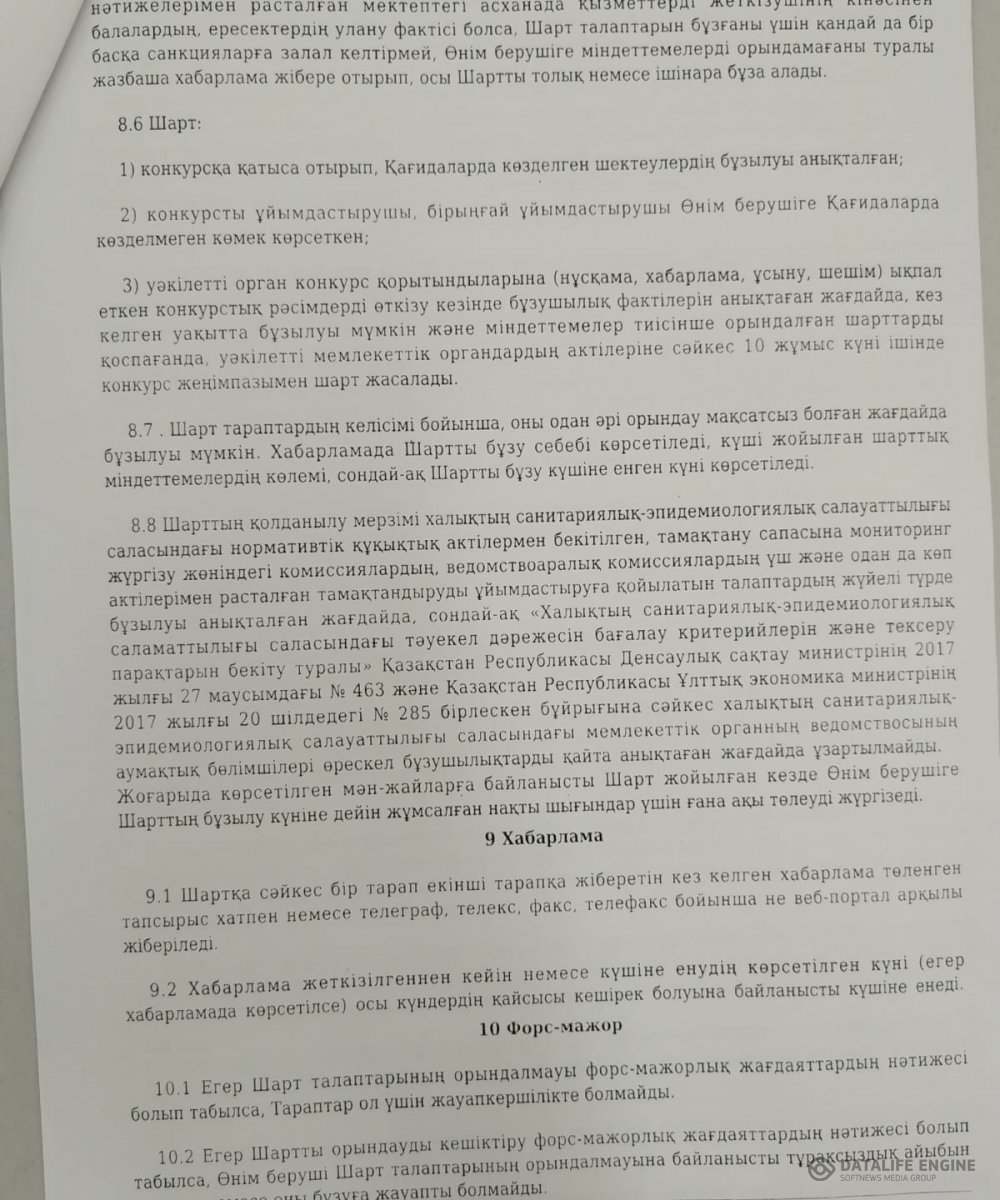 » » Екіаша орта мектебінің ыстық тамақтың келісім шарты